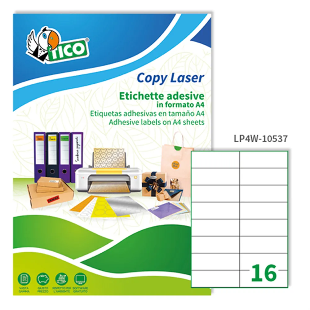 Etichette Adesive Copy Laser Premium Tico senza Margini - A4 - 105x37 mm - LP4W-10537 (Bianco Conf. 1600)