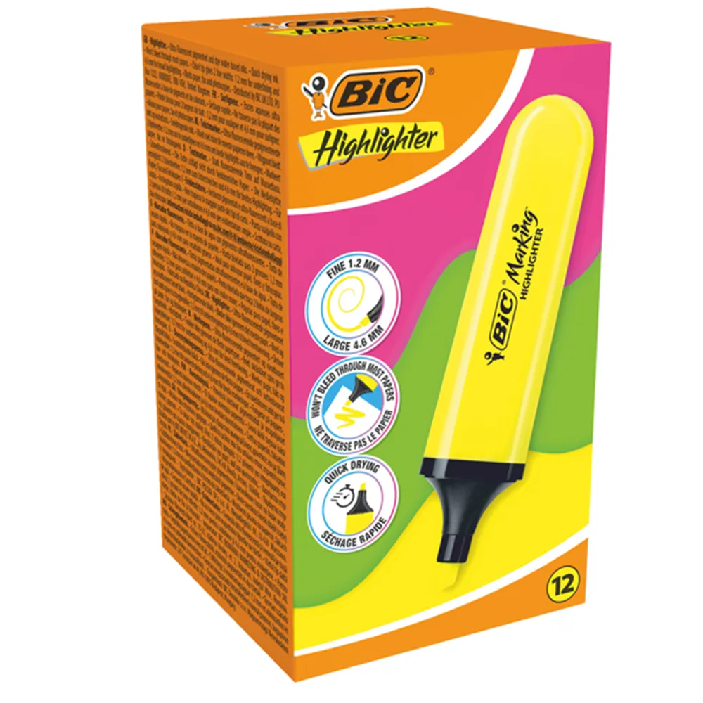 L'impatto positivo sulla tua organizzazione e sulla resa dei tuoi studi sarà incredibile. Noterai la differenza fin dal primo utilizzo su libri, fotocopie o documenti stampati al computer. Non dovrai più temere sbavature incerte, inchiostri che trapassano il foglio o sprechi di tempo. Grazie alla speciale punta a scalpello, questo evidenziatore offre una precisione perfetta in ogni situazione. La tecnologia dell'inchiostro a base d'acqua protegge la nitidezza del testo sottostante senza cancellarlo o macchiarlo. È potente contro la disattenzione ma con la caratteristica fondamentale di essere delicato sulle superfici cartacee. Conserva le caratteristiche di brillantezza del pigmento esattamente come richiesto in un ufficio moderno. La formulazione è studiata per minimizzare la fatica e garantire l'omogeneità del colore sulla pagina. Offre un supporto solido, preciso e sicuro per ogni momento della tua revisione testuale. Gli evidenziatori Bic sono dotati di tutte le certificazioni di idoneità per l'uso in ambienti lavorativi e scolastici. È uno strumento indispensabile per chi desidera ottenere una gerarchia visiva impeccabile con un minor sforzo. Ti aiuta a mantenere un livello di attenzione costante anche durante le letture più lunghe.