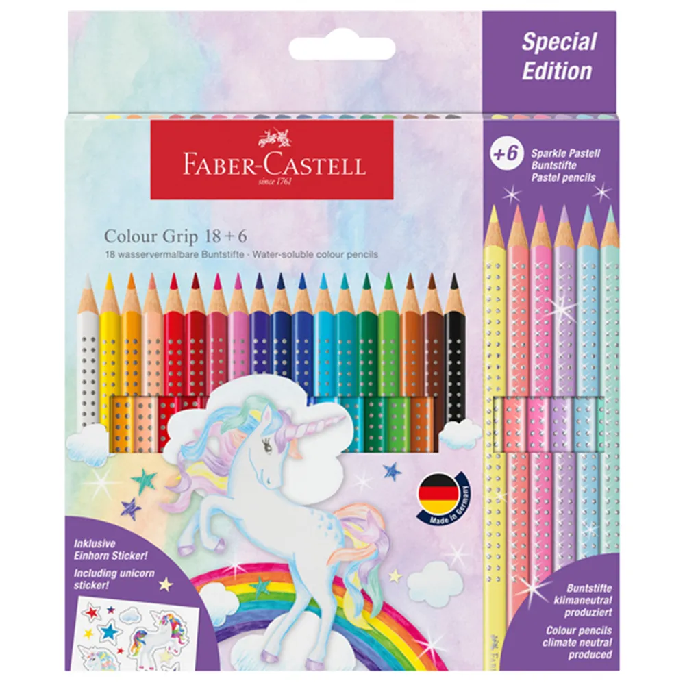 Matite Colorate Colour Grip e Sparkle Faber Castell - 3,3 mm - 201543 (Assortiti Conf. 18+6)