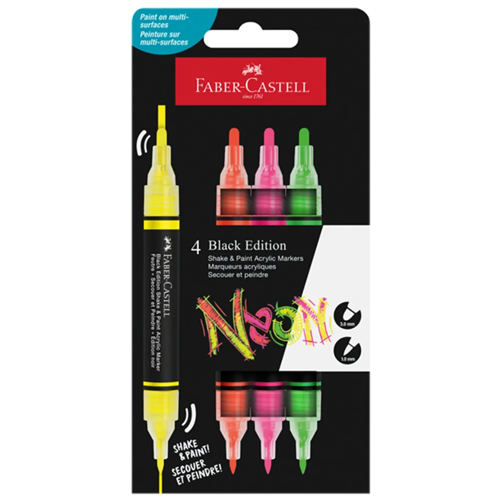Marcatore Permanente Shake&Paint Faber Castell - Doppia Punta Tonda - 1 e 3 mm - 285505 (Assortiti Neon Conf. 4)