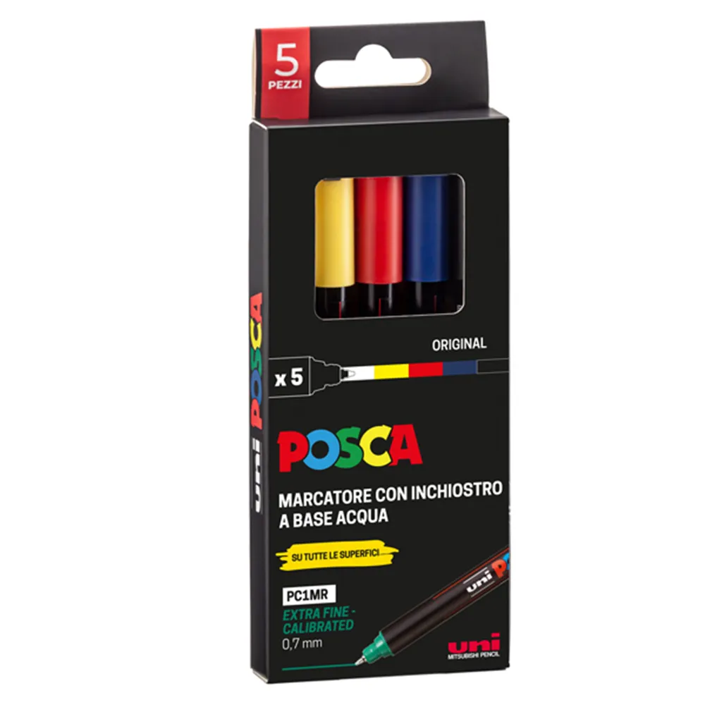 Marcatore a Tempera Uni Posca PC1M Uni-Ball - Punta Tonda - 0,7 mm - M-PC1MR-5P/2 (Assortiti Conf. 5)