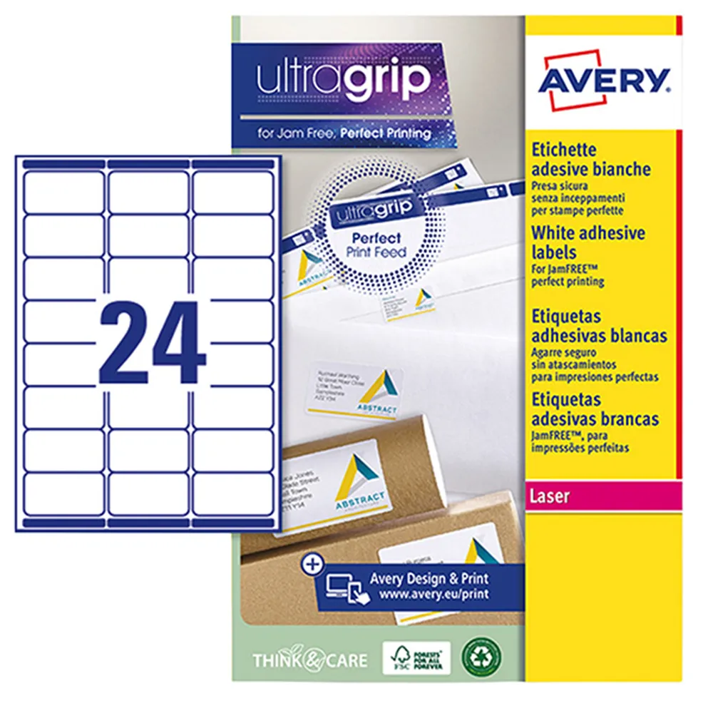 L’impatto positivo sulla tua routine e sulla velocità di archiviazione sarà incredibile fin dal primo utilizzo. Noterai la differenza su stampanti laser, inkjet o nelle multifunzione del tuo studio privato. Non dovrai più temere inceppamenti fastidiosi, stampe sbilenche o sprechi di tempo cercando di raddrizzare i testi. Grazie alla speciale tecnologia brevettata UltraGrip, queste etichette offrono una presa perfetta del rullo. Il materiale cartaceo è studiato per essere ultra-resistente invece di arricciarsi sotto il calore della stampa. È potente nell’aderire alle superfici ma delicato sulle dita grazie agli angoli arrotondati. Conserva le caratteristiche di brillantezza del bianco esattamente come richiesto da un ufficio moderno e dinamico. La formulazione dell’adesivo è studiata per minimizzare i residui e garantire la massima tenuta nel tempo. Offre un supporto solido, preciso e sicuro per ogni momento della tua vita lavorativa quotidiana. I prodotti Avery sono dotati della funzione QuickPeel che facilita il distacco rapido dell'etichetta dal foglio. È uno strumento indispensabile per chi desidera ottenere una comunicazione impeccabile con un minor sforzo manuale. Ti aiuta a mantenere un livello di professionalità costante anche durante le spedizioni più massive.