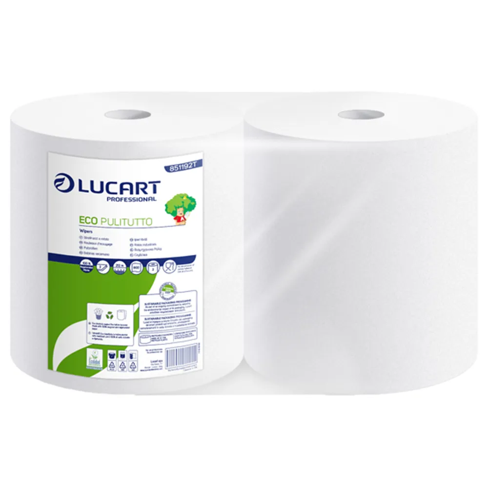 Acquistare la bobina 851192T significa affidarsi a Lucart, marchio storico leader nell'igiene professionale e sostenibile. La purezza del colore bianco comunica ai tuoi clienti un forte orientamento alla pulizia e alla cura. La robustezza della trama permette di strizzare il foglio e riutilizzarlo per rifinire piccole zone sporche. È perfetta per la manutenzione di vetri o specchi, poiché garantisce trasparenza senza lasciare alcun alone. Ogni confezione è sigillata ermeticamente per preservare le proprietà igieniche fino al momento dell'utilizzo effettivo. Scegli la sicurezza di una certificazione ecologica che nobilita l'immagine della tua attività commerciale o industriale.
