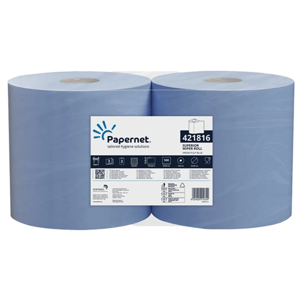 Bobina Asciugatutto Superior Papernet - 2 Veli - 500 Strappi - 421816 (Blu Conf. 2)