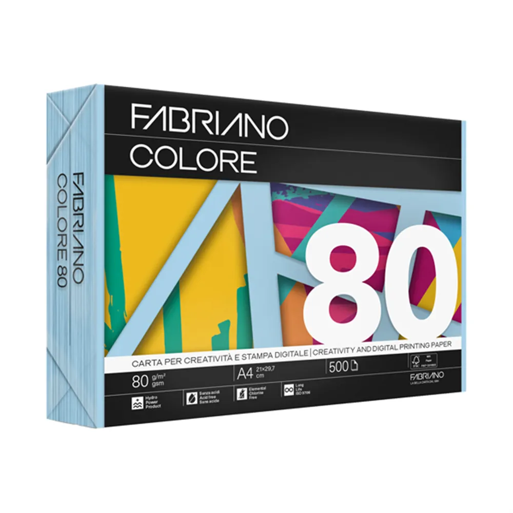 Carta Colorata Colore Fabriano - A4 - 80 g - 74721297 (Celeste Tenue Conf. 500)